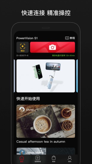 云台操控全面升级:通过蓝牙直连S1云台,支持俯仰/横滚/平移三轴精细调节、自定义运动轨迹及多种智能运镜模式。