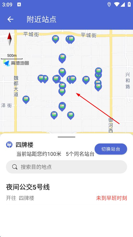 3、切换至【站点地图】模式,直观浏览周边站点分布、步行距离与覆盖线路,结合实时轨迹辅助制定最优候车或换乘方案。