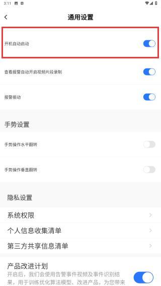 3、开启「开机自动启动」开关,系统将自动后台保活,确保监控服务持续运行。