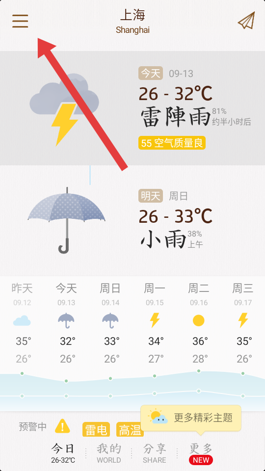 「我的天气(myweather)」不是又一个功能堆砌的天气App,而是一款以设计驱动体验、用细节打动用户的精致气象伴侣。它用极简界面承载专业数据,以动态主题呼应真实天气——下雨时唐风界面浮现油纸伞,晴日里宇宙主题流转星轨光效;支持中国3000+市县与全球5000城精准预报,十日分时趋势、实时空气质量、灾害预警一应俱全。无论你是追求效率的通勤族,还是在意审美的生活家,这里总有一款主题、一种动效、一段文字,恰好落在你此刻的心境上。