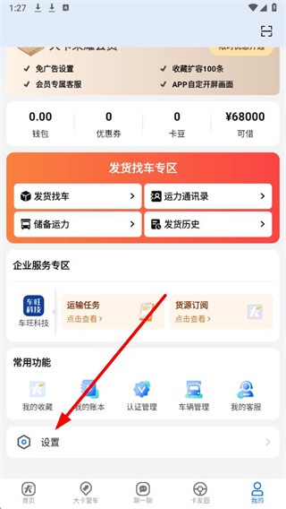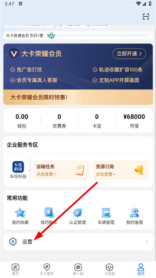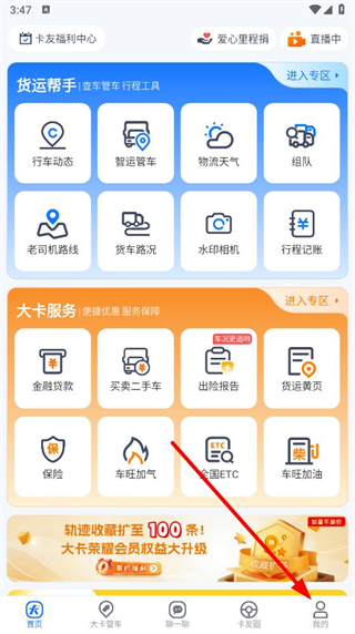 1、在车旺大卡app首页点击我的选项,进入个人页面。