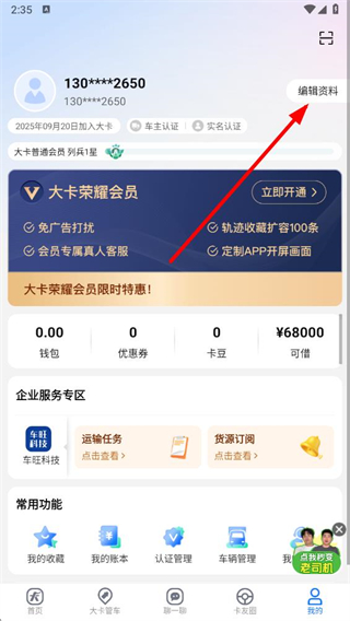 1、打开车旺大卡app,点击右下角我的选项,进入个人页面。