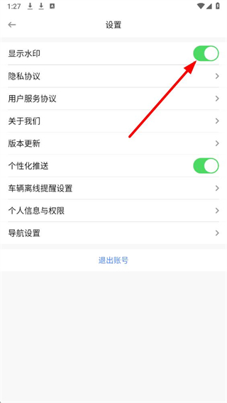 3、在设置页面中,找到显示水印对应的开关按钮,点击开关按钮,即可去除水印显示。