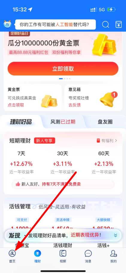 1、打开支付宝APP,进入首页主界面;