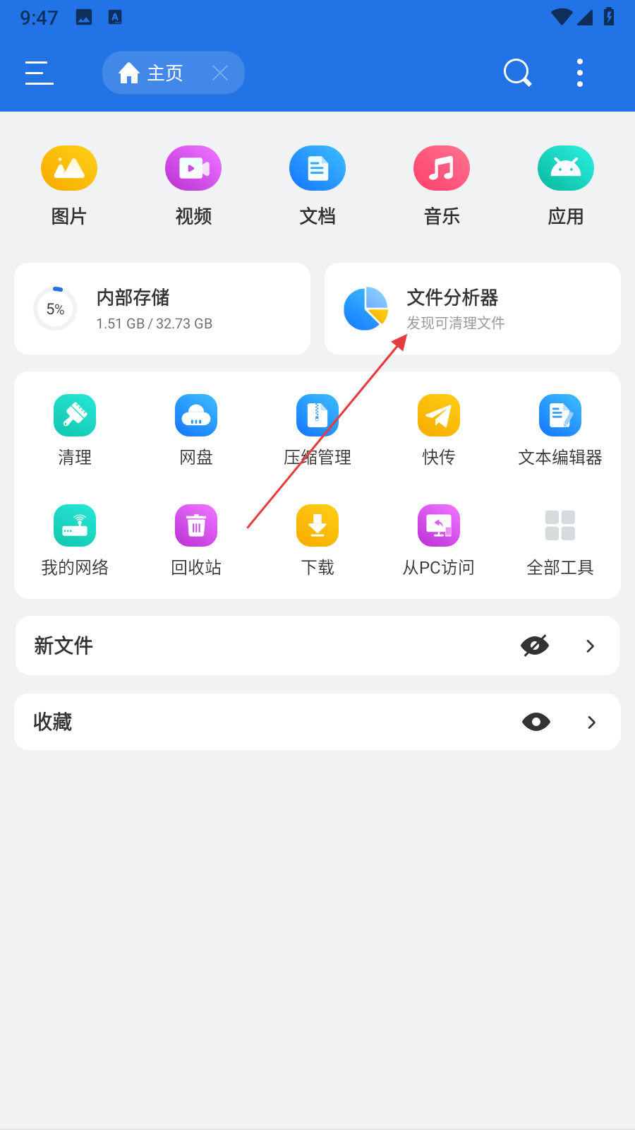启动APP后,在首页底部功能栏中点击【文件分析器】,直接进入可视化分析界面。