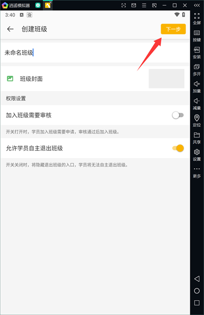 3. 填写班级名称、上传封面、设置简介 → 点击【下一步】;