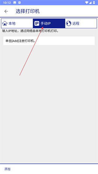 ② 若未识别,点击「手动IP」→ 输入打印机后台显示的IP地址 → 点击「Add」完成注册;