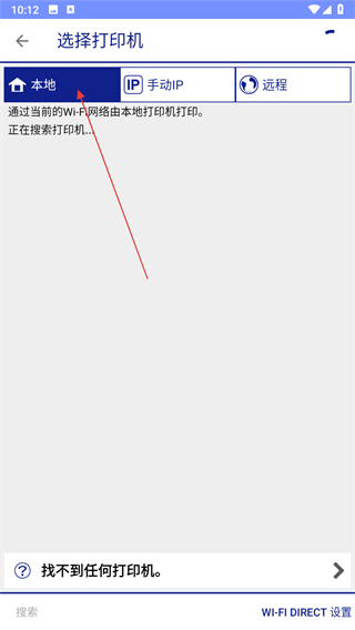 ① 打开App → 点击「未选择打印机」→ 选择「本地」自动搜寻同Wi-Fi下爱普生设备;