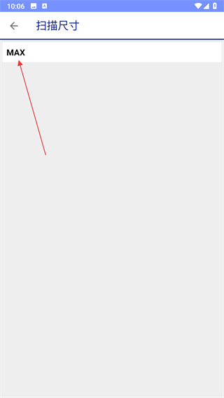 ③ 点击「扫描尺寸」→ 在选项列表中选择「MAX」→ 返回即生效。
