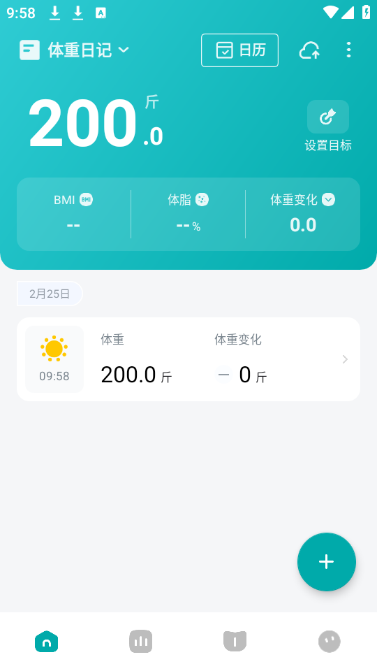 2、点击右下角的“+”号按钮,即可开始录入当天的体重及其他体质数据。
