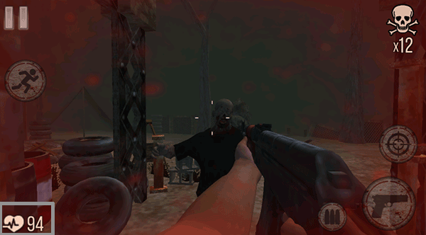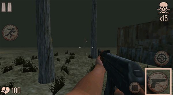 第二步:首战练手——左侧必出一只落单僵尸,瞄准后点击右下角射击按钮完成首杀,熟悉准星反馈与命中判定
