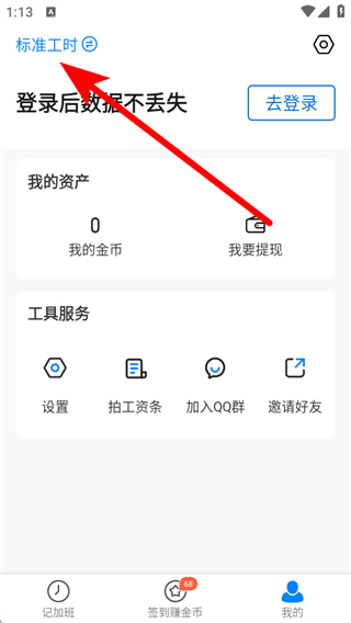 2、点击左上角【标准工时】,跳转至工时制度设置页;