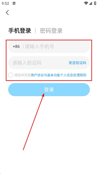 进入【我的】→【登录/注册】,输入手机号+验证码,勾选协议即刻开通账户。