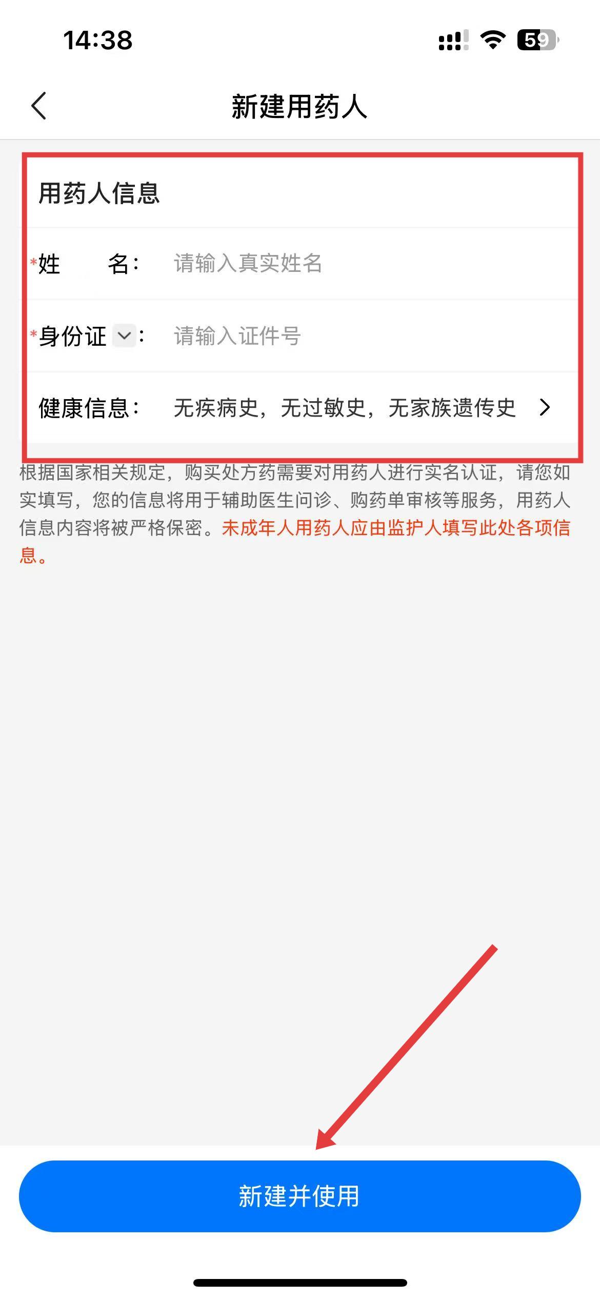 信息确认后点击【新建并使用】,即可为指定家人专属选药、定向提醒、独立结算。