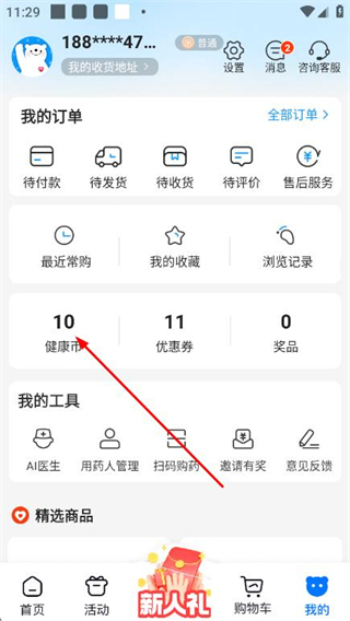 登录即送健康币,每日签到、完成任务、邀请好友、评价订单均可持续累积。健康币可直接抵扣现金购药,无使用门槛,实实在在降低家庭健康支出。