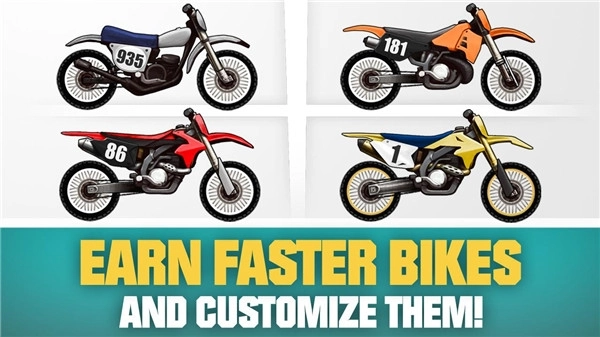开局即享4款风格迥异的山地摩托:轻巧敏捷型、高抓地力越野款、重装耐撞型、极速爆发型。每辆车拥有独立物理特性与操控反馈,真正实现“车随心动”。后续更多专业级车型需通过通关进度逐步解锁——你的技术越强,座驾越猛!