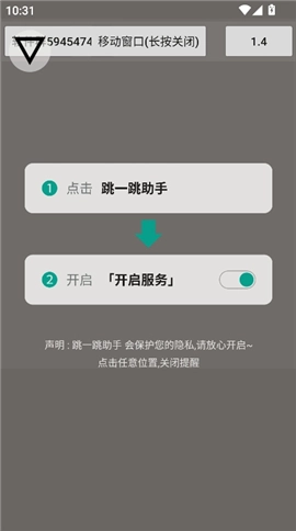 2. 首次启动时,请务必开启「悬浮窗显示权限」——这是辅助功能生效的前提。