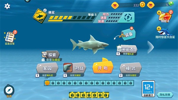 9. 在日常任务中完成指定目标,即可领取丰厚奖励——不仅可用于为鲨鱼装配强力道具,还能解锁特殊模式与隐藏内容,更多精彩玩法等待你亲自发掘。